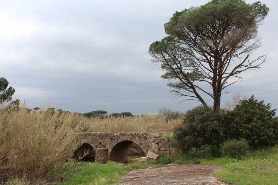 Unvergleichliche Wanderung zu und durch die Ebene der Mauren, eine charakteristische Landschaft mit Weinfeldern, Pinien und einzigartigen rosa Sandsteinplatten.