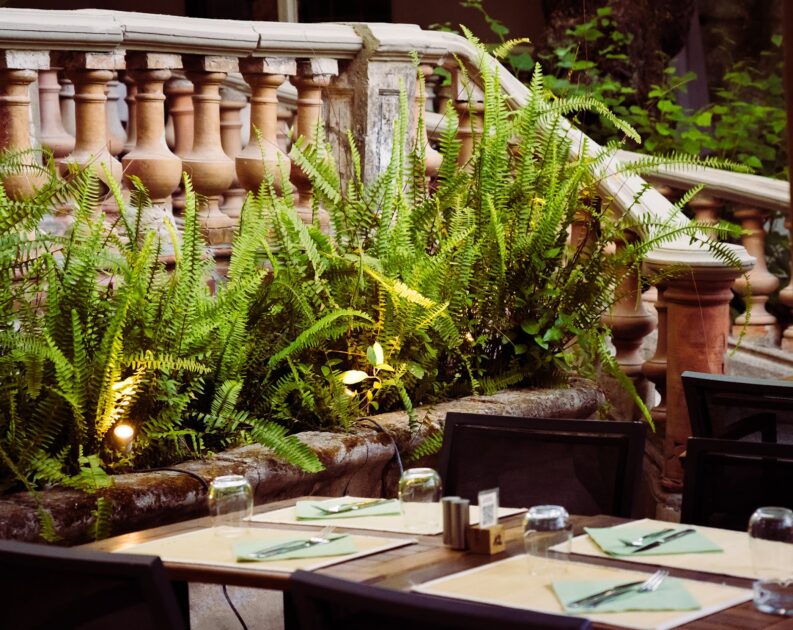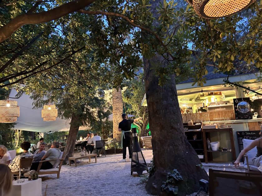 Restaurant nur im Freien in einem denkmalgeschützten Garten.