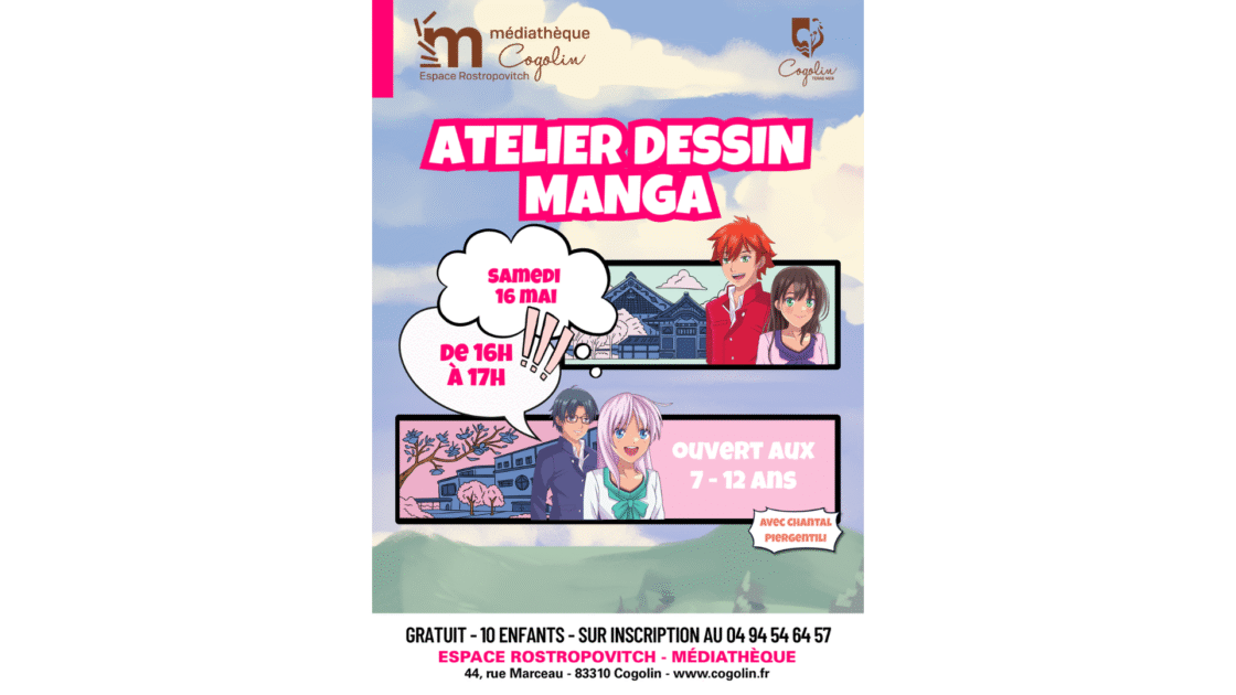 Introduce yourself to the world of manga at a workshop specially designed for children aged 7 to 12. Under the guidance of Chantal Piergertti, participants will learn the basics of manga drawing and bring their own characters to life.