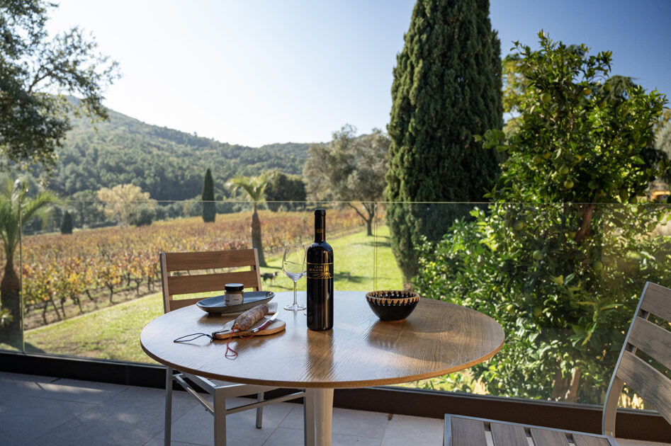 The estate also offers accommodation with an apartment and three guest rooms, set around a large swimming pool, in the heart of the vineyards and facing the Massif des Maures.