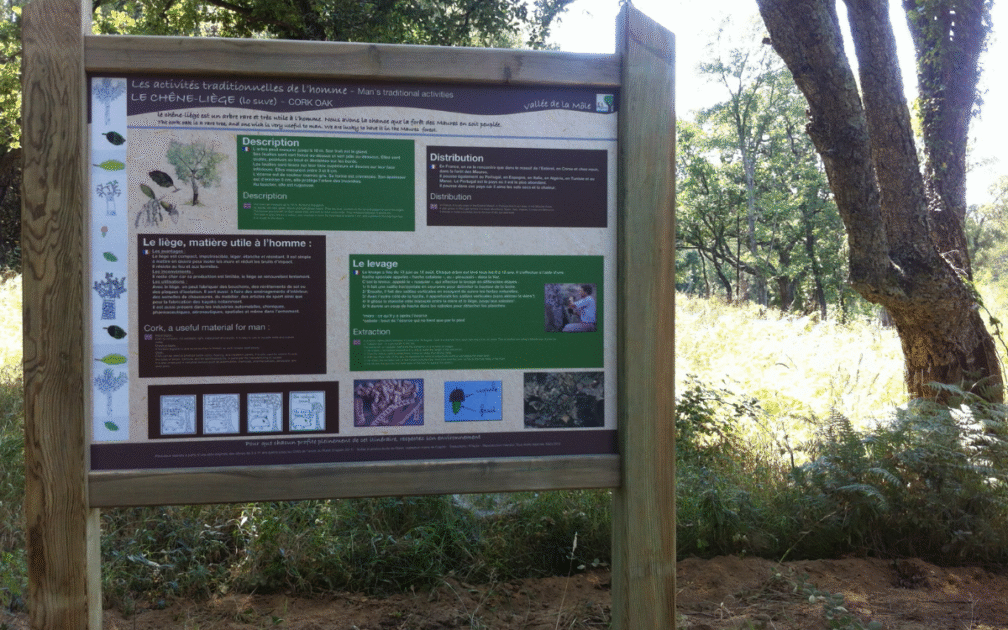 Along a path easily accessible to cyclists and pedestrians, 5 thematic panels will lead you to discover the cork oak, mulberry tree, pastoralism, cane and heather exploited and cultivated over time by man.
