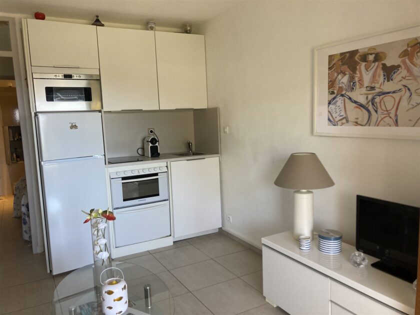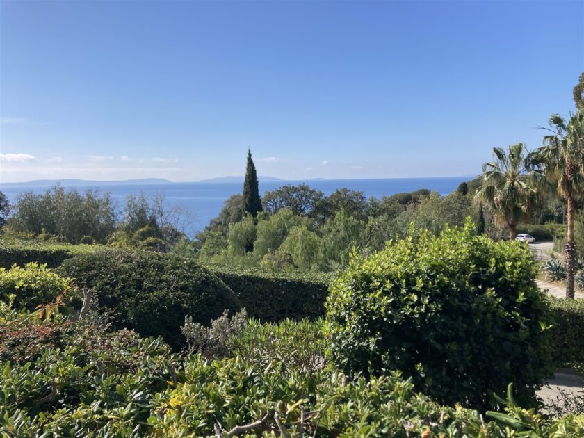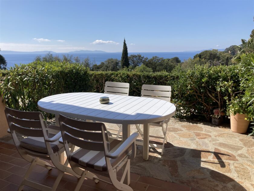 Charming, well-equipped, well-decorated apartment with double terrace (covered terrace and small garden) with breathtaking views of the sea and the Golden Isles.