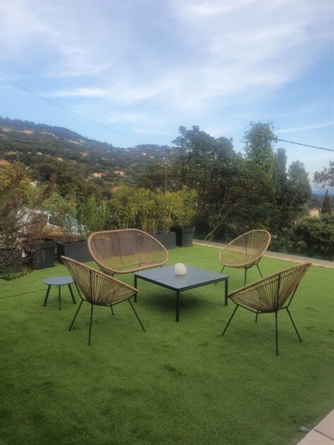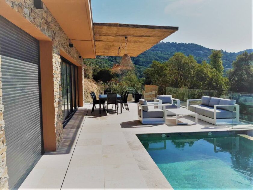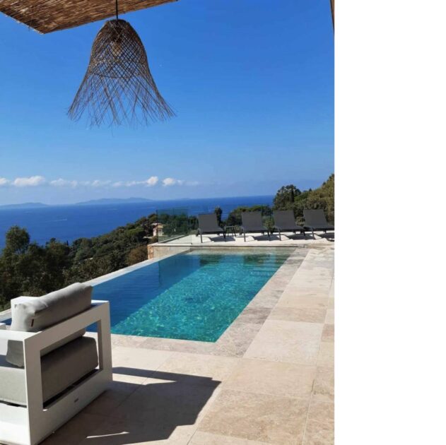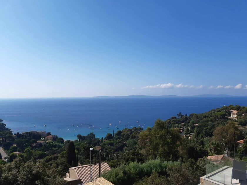 This modern, fully air-conditioned villa with infinity pool can accommodate up to 7 people and is the ideal place to spend pleasant moments with family or friends. The house has a large bay window opening onto a vast terrace with a breathtaking view of the sea facing the Golden Isles. It has 3 bedrooms, each with its own shower room, and a large living room comprising lounge, living room and fully-equipped kitchen.