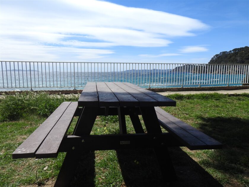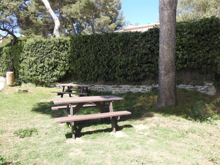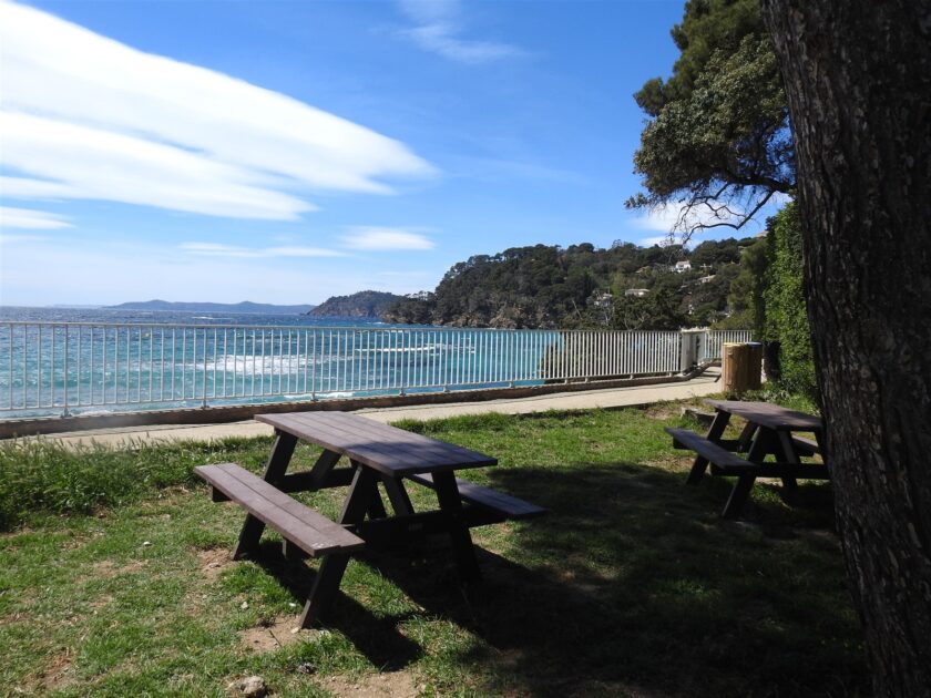 Aire de pique-nique proche de la plage Rayol Est face à la mer et les îles d'or...deux tables et bancs. De cette aire de Pique-Nique accès facile et rapide au Domaine du Rayol (en empruntant les marches et en marchant environ 200m sur la route).