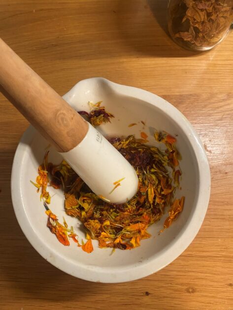(Sous réserve de l’autorisation : cueillette d’une espèce végétale tinctoriale au jardin)