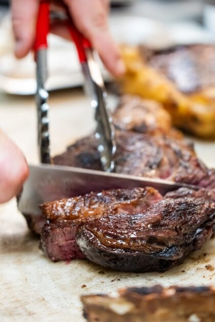 Chez Bastianin – Boucherie Restaurant : viandes d’exception au feu de bois, charcuteries artisanales, truffe, homards, caviar, grands vins italiens et français, et plats dédiés à ceux qui ne mangent pas de viande.