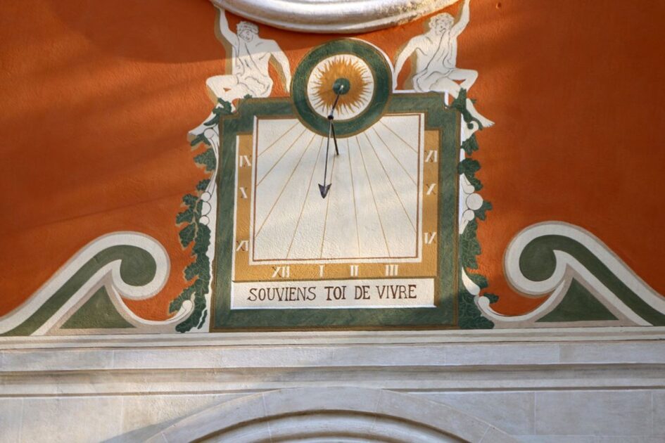 La petite église de 1872, à la façade colorée, comporte au-dessus de l'entrée un cadran solaire où l'on peut lire cette devise : « souviens-toi de vivre »