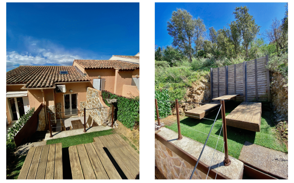 Charmante maison individuelle au cœur du Golfe de Saint-Tropez, terrasse extérieur, balcon vue sur le Château de Grimaud, domaine privé, piscine, terrain de tennis.