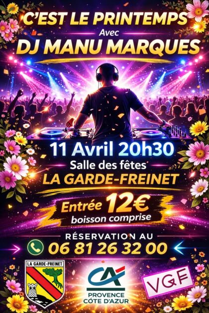 Le 11 avril à la salle des Fêtes MANU MARQUES va chauffer la salle à blanc !! Réservations souhaitées 06 81 26 32 00 VIVONS LA GARDE FREINET !