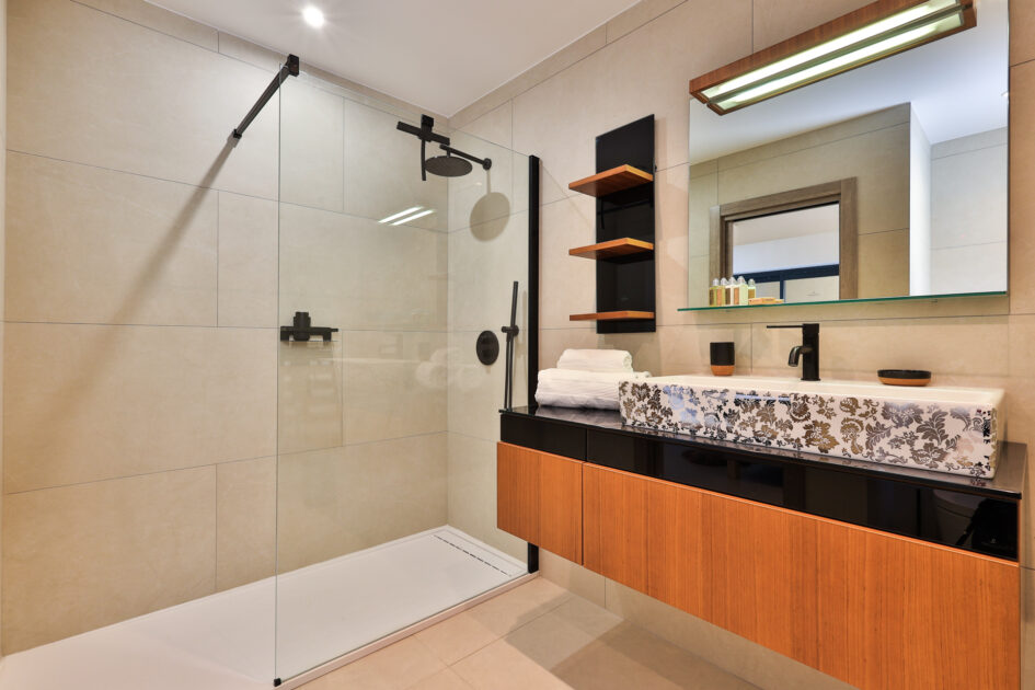 Au premier étage d’une villa, baigné de lumière et tourné vers la mer, cet appartement au style contemporain, dispose d'une cuisine ouverte avec espace salon et d’une terrasse privative.