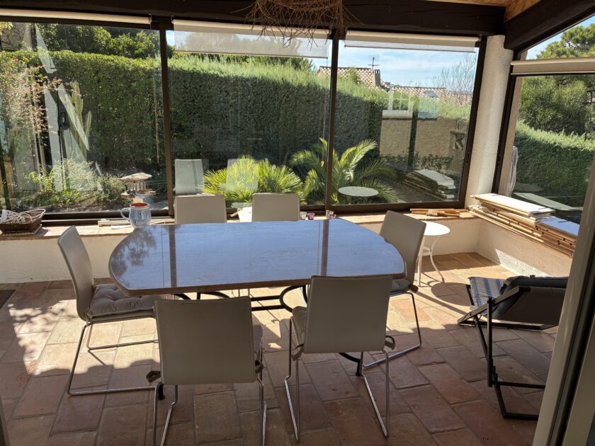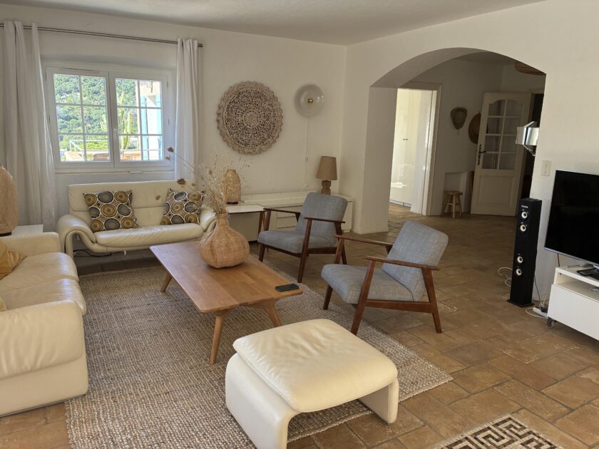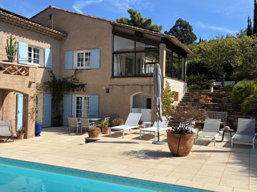 Grande villa, 5 chambres, très bien décorée, avec ses différentes terrasses, son jardin, sa piscine chauffée protégée par barrière. 5 mn à pied de la plage du Canadel