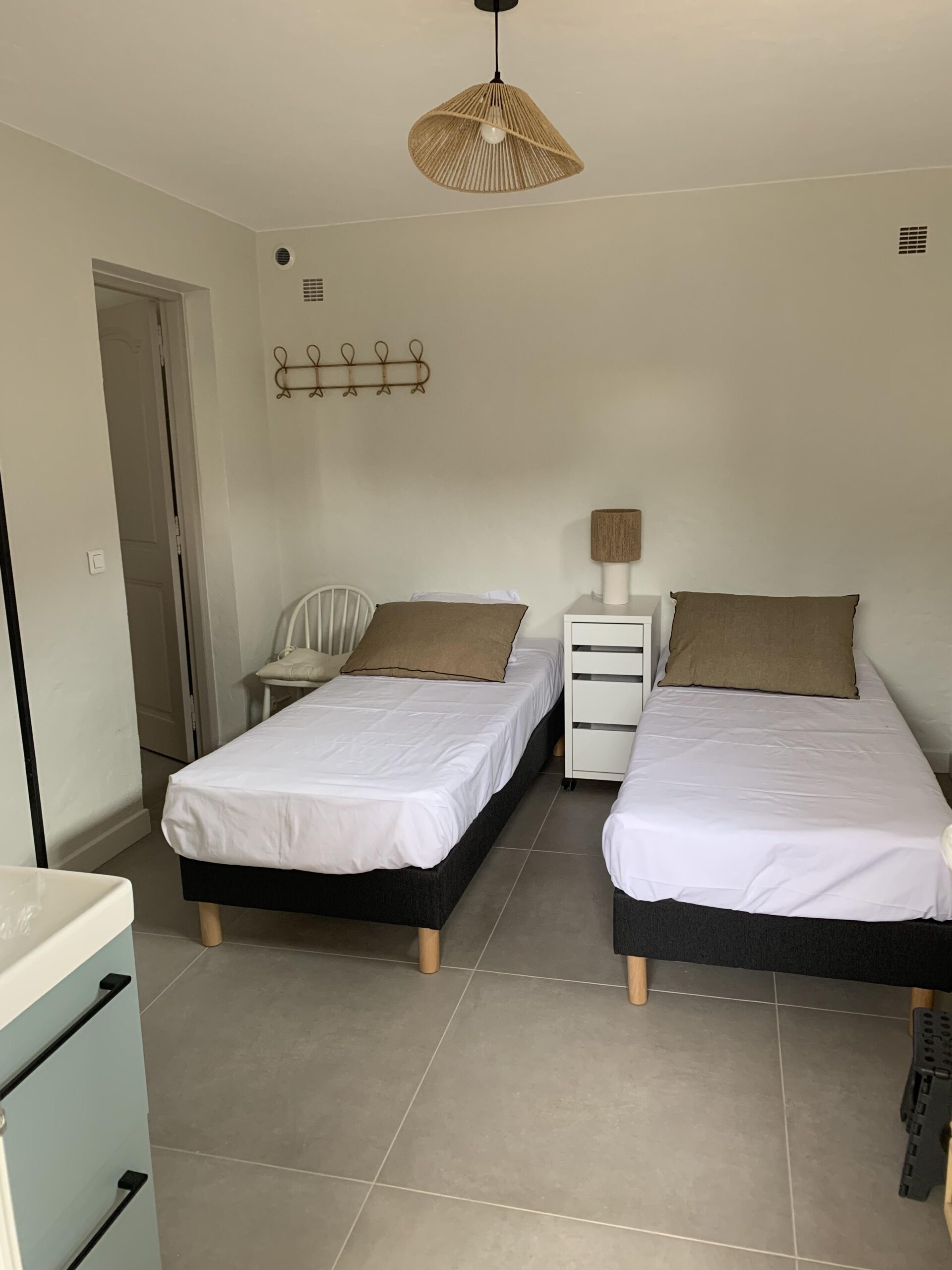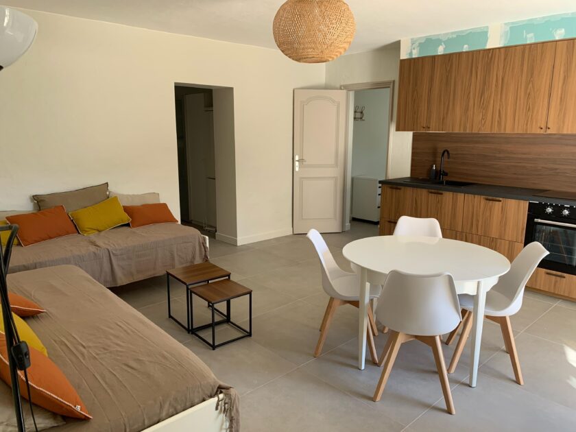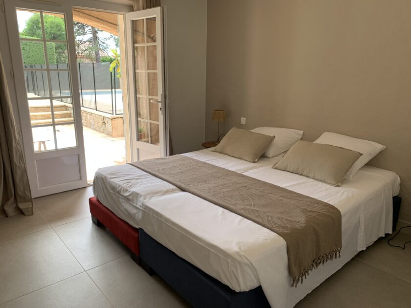 Au Rez de chaussée ( niveau piscine) entièrement refait: 3 chambres avec lits double 160 (dont 2 transformables en lits simples) et un studio / cuisine avec 2 lits 90 cm , 2 SdB, 2 toilettes et une douche extérieure couverte.