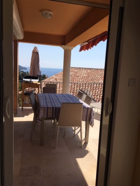 Le balcon loggia de 20m2 offre mille possibilités de déjeuner face à la mer, une terrasse de 60m2 et un jardin arboré incitent la farniente le regard sans cesse attiré par l'immense masse bleue. La Villa offre confort et fraîcheur.