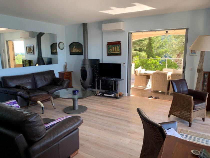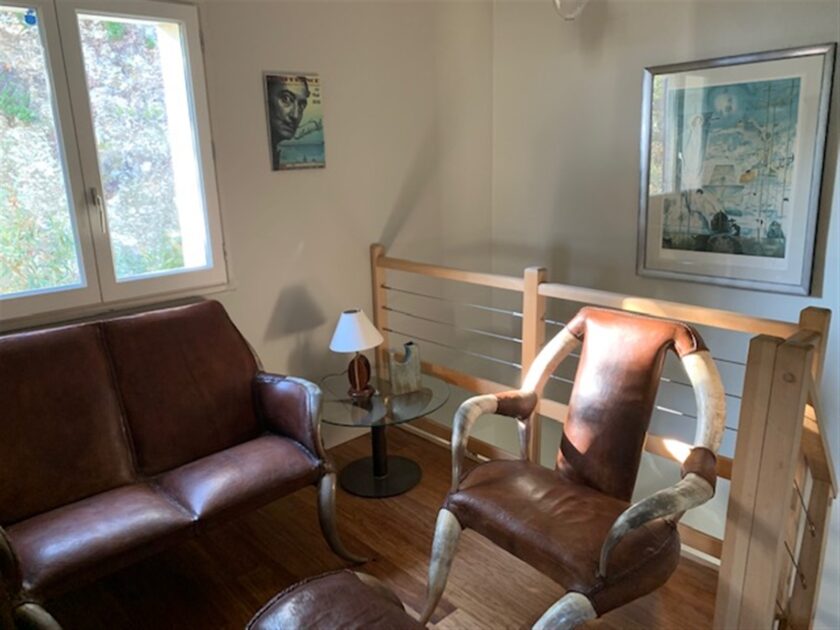 Salle à manger (10 places assises) et salon climatisé, sa cuisine toute équipée, ses 5 chambres (4 climatisées), une bibliothèque.