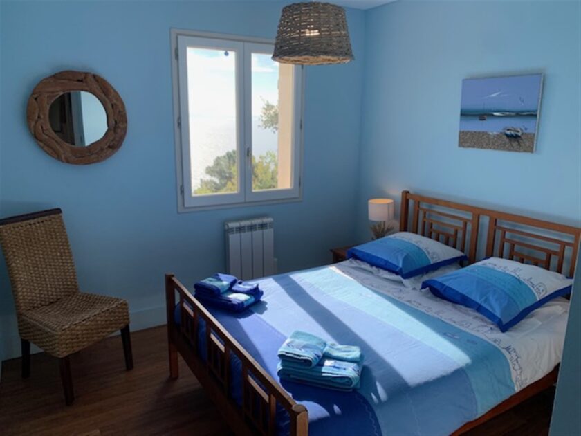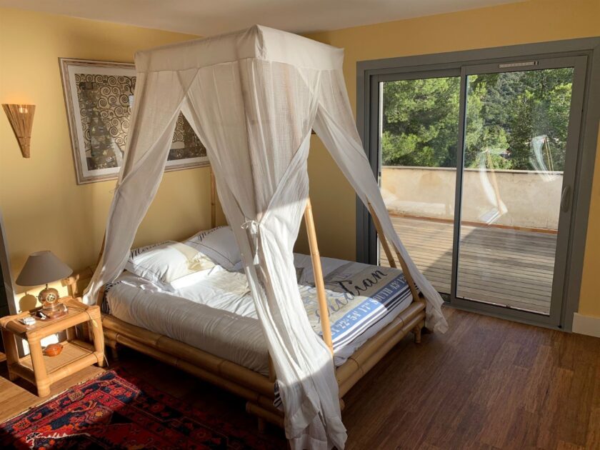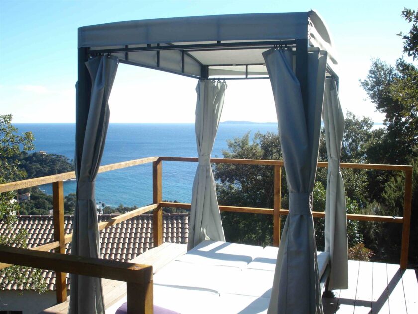 Plus : sur les hauteurs de la villa en colline dans un écrin de verdure, un lit d'extérieur à baldaquin sur terrasse entre ciel et terre avec vue mer. 4 kayaks de mer à disposition, palmes, masques et tubas.