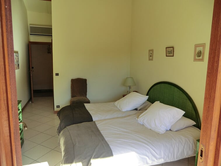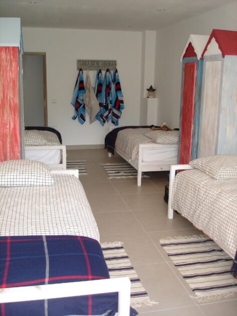 Étage avec 3 lits doubles et une dont on peut séparer deux lits simples et au Rdj chambre d’e fants 4 lits simples.