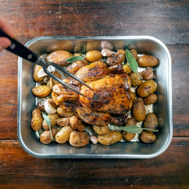 Rosticceria a legna che serve pollame ruspante e carni francesi con contorni fatti in casa a base di prodotti freschi, parmigiana di melanzane, gratin dauphinois al tartufo, ecc...