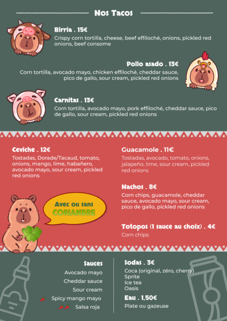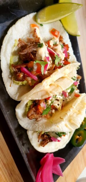Ispirati al concetto dei food truck, serviamo tacos messicani, nachos e ceviche freschissimo, preparato in casa dalla tortilla di mais ai tolopos, le chips di nachos.