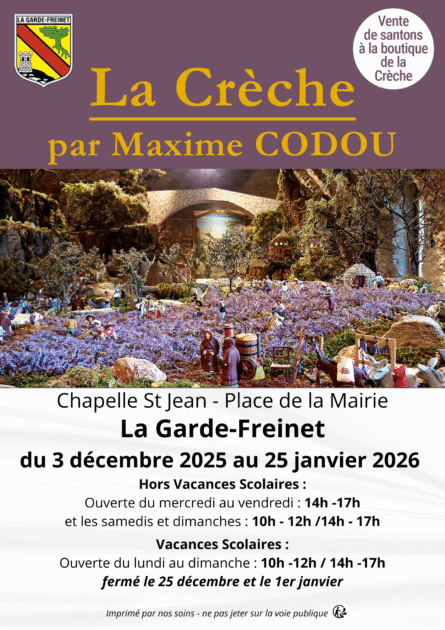 La cappella Saint Jean de la Garde Freinet ospiterà il grande presepe provenzale creato da Maxime Codou e dai volontari dell'associazione Les Amis de la Crèche. Quest'anno Maxime Codou trasporterà i visitatori in un mondo di sogni e evasione.
