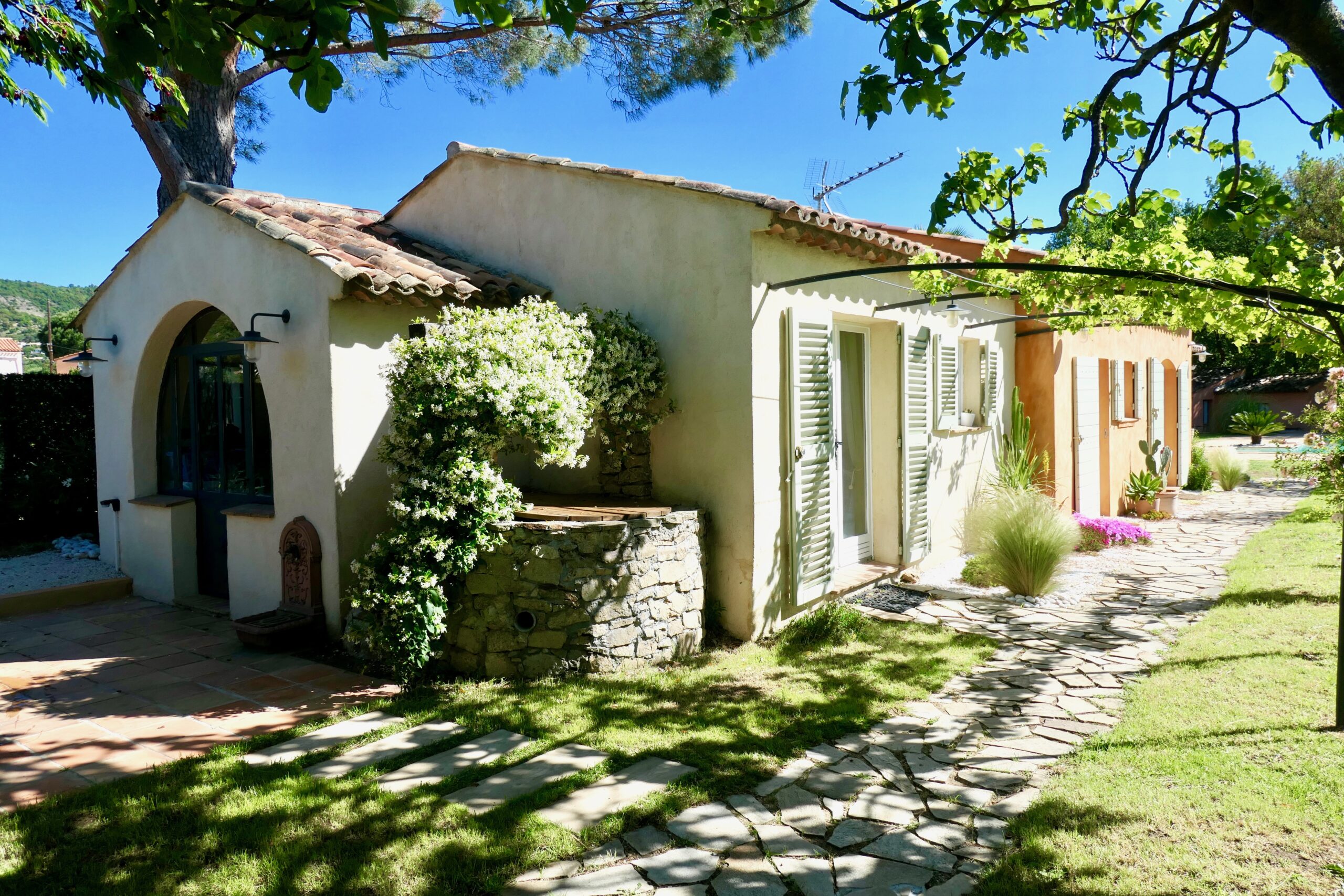Questa incantevole casa con ampio giardino completamente recintato, situata nel tipico villaggio di Plan de la Tour nel Golfo di Saint Tropez, è ideale per i vacanzieri in cerca di pace e tranquillità.