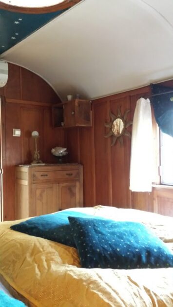 Romantica, insolita e confortevole, questa roulotte da fiera ristrutturata e climatizzata offre un posto letto con tutti i comfort per 2 persone.