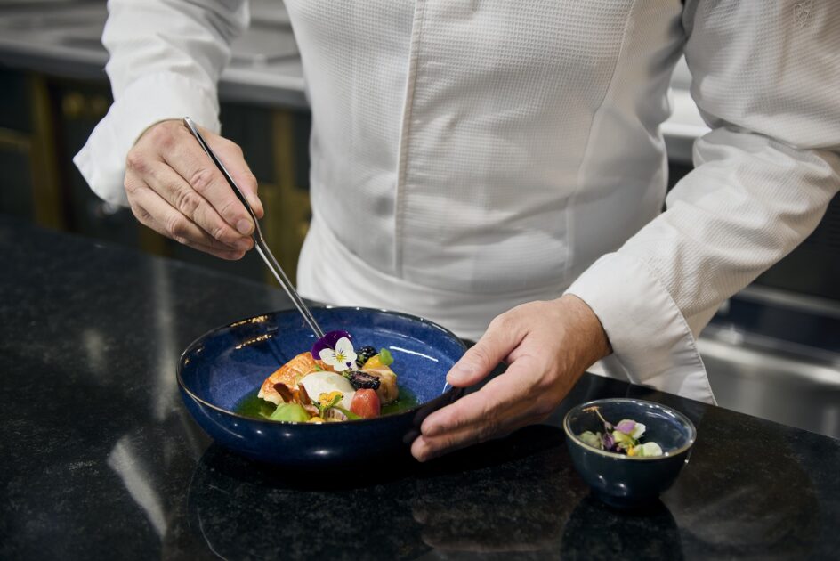 Impregnato dei colori e dell'accento della Provenza, il ristorante UP offre un menu elegante e creativo che sublima il terroir provenzale con una bistronomia moderna e colorata che rompe i codici in modo assoluto. Il menu prevede prodotti di stagione e un'esperienza gastronomica all'insegna della condivisione. Ogni piatto, meticolosamente ideato dal nuovo chef Kevin Soria, promette una sinfonia di sapori che esalta creatività e modernità.