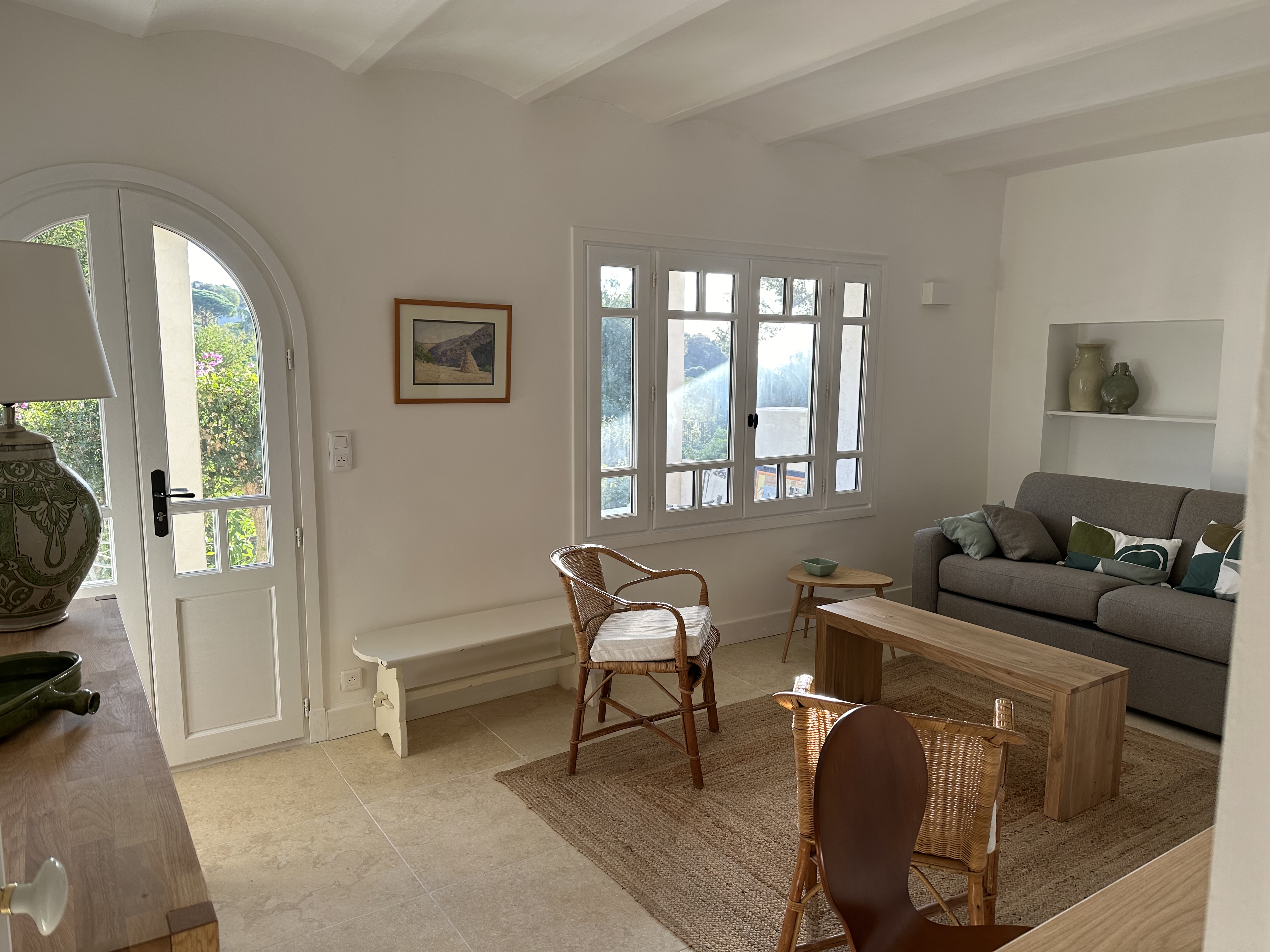 A 150 m dalla spiaggia del Canadel e a pochi passi dalla vecchia linea ferroviaria, affittiamo il piano terra di un appartamento T3 in una graziosa villa degli anni '20, completamente ristrutturato con giardino, piscina privata, parcheggio, 7 posti letto, aria condizionata.
